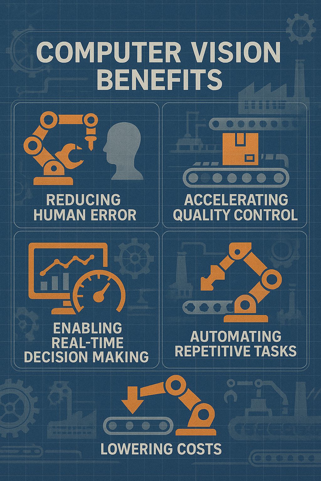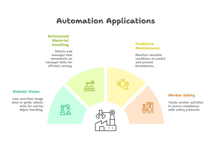 Beyond quality inspection, computer vision also plays a vital role in automating manufacturing operations, from robotic guidance to inventory tracking.
