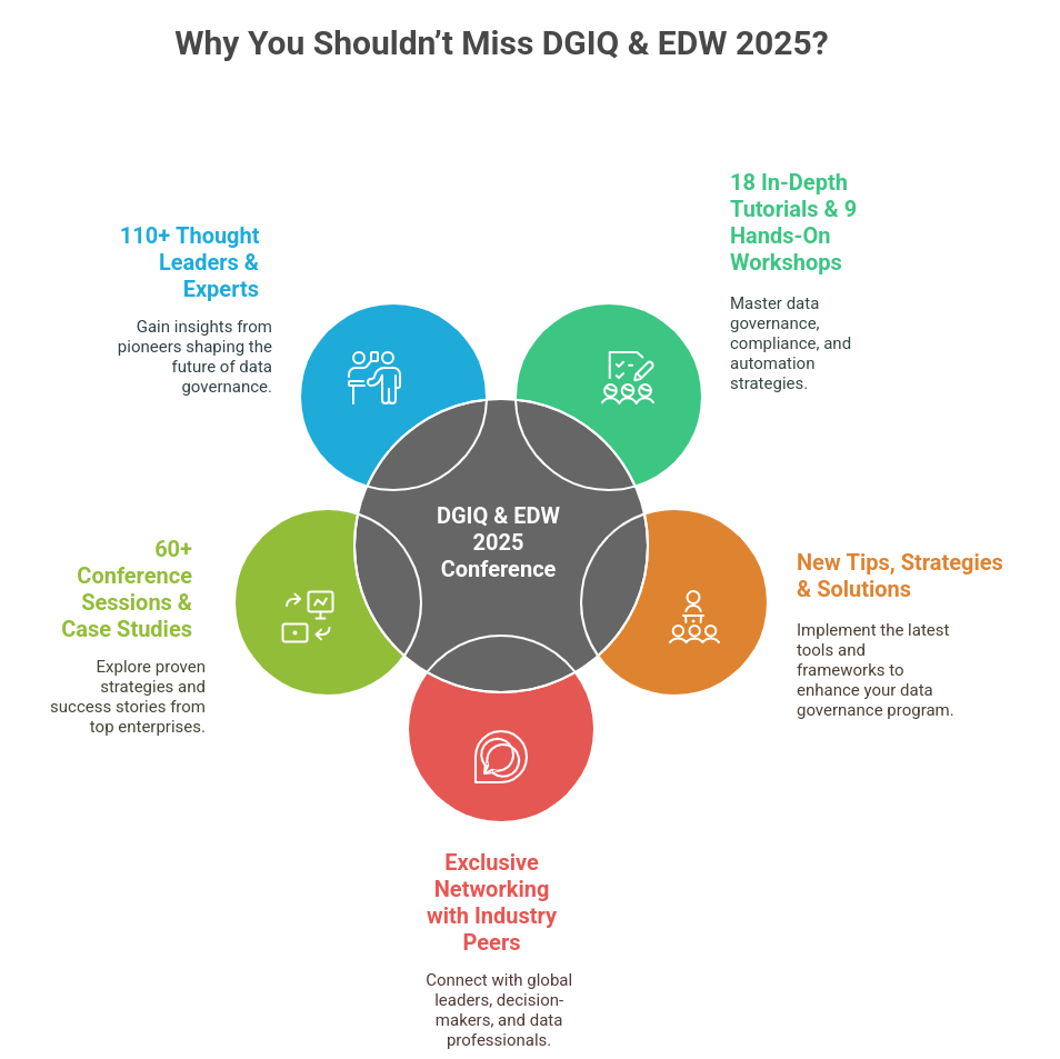 DGIQ & EDW 2025 is your chance to explore the latest advancements in data governance, AI, and Big Data solutions. With exclusive workshops, hands-on tutorials, and insights from industry leaders, the event offers a unique platform to sharpen your skills and stay ahead in the fast-evolving data landscape.