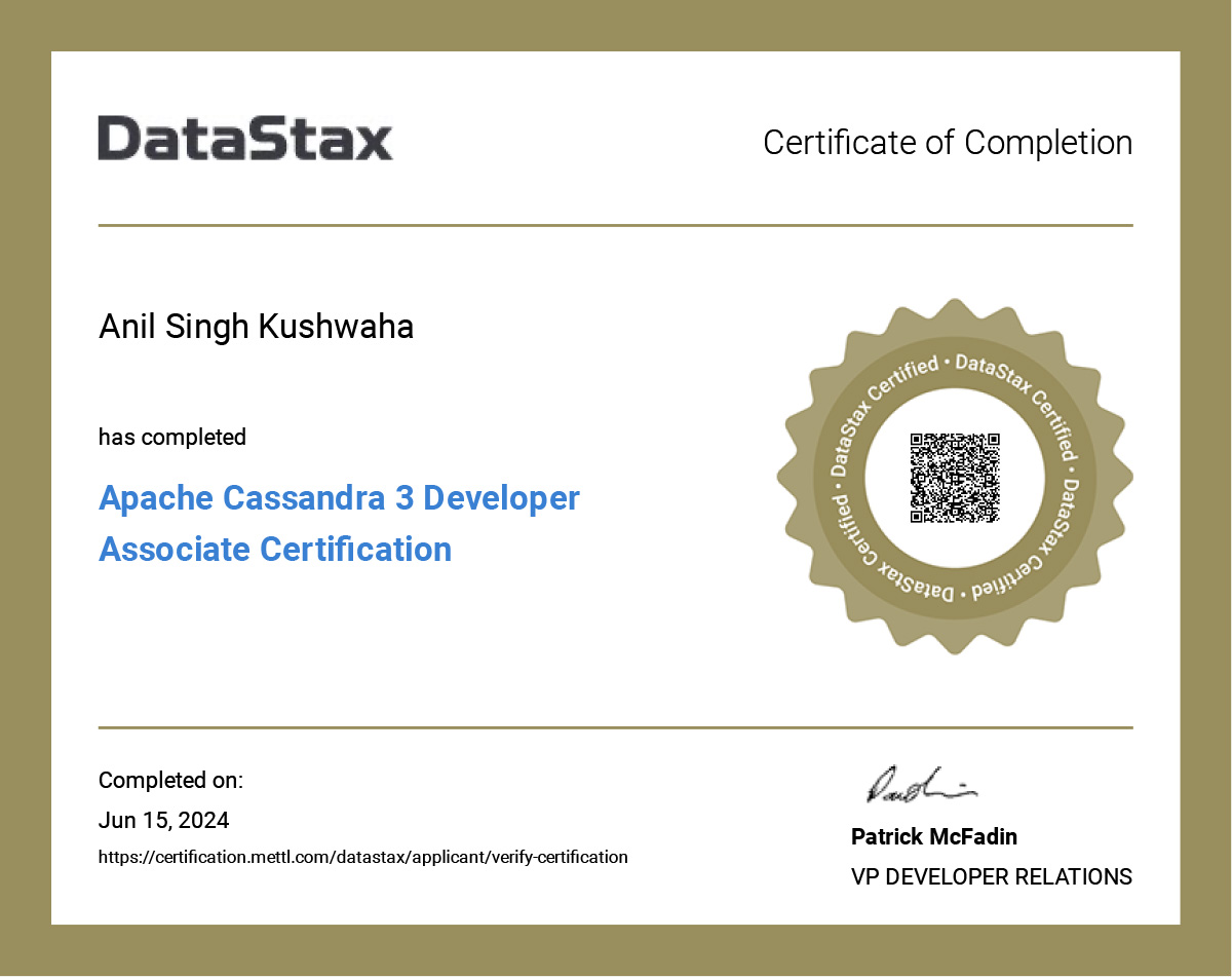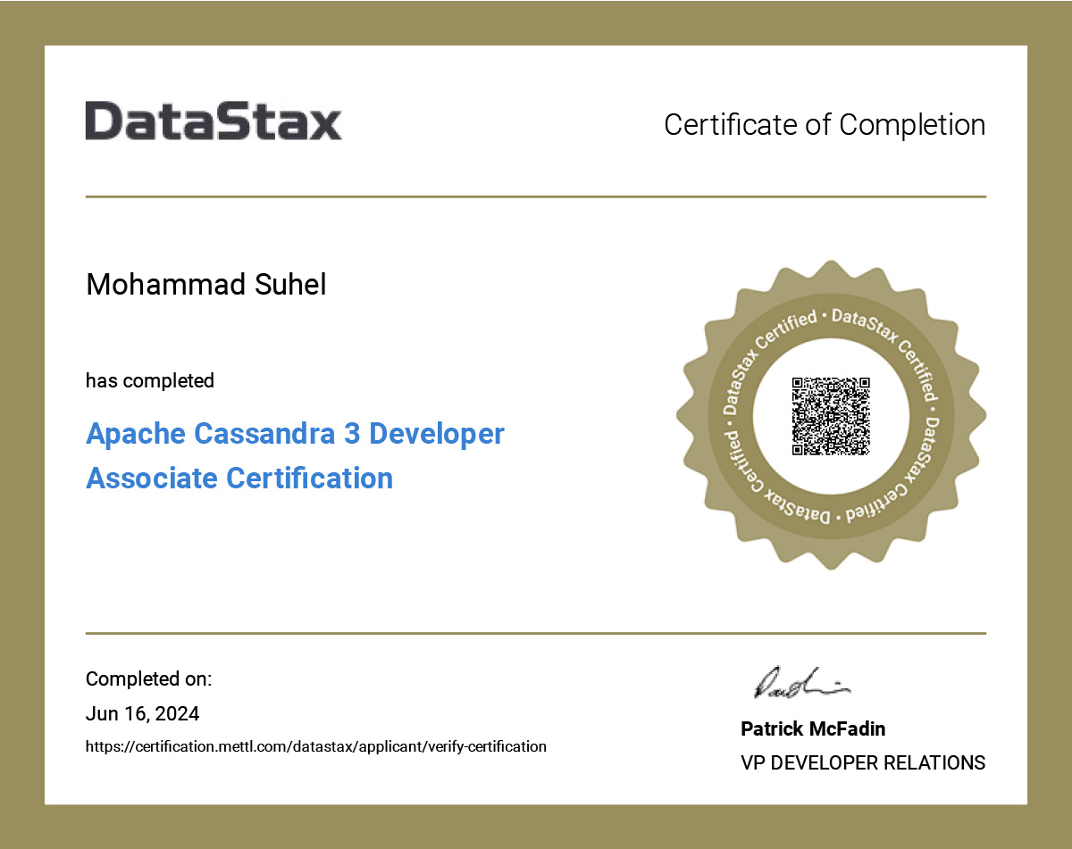 At Ksolves, we foster a strong culture of continuous learning and professional growth. Today, we proudly announce that our talented team of professionals has earned the prestigious Apache Cassandra DataStax Professional certification, showcasing their expertise and dedication to the technology. This achievement not only underscores our commitment to excellence but also solidifies our expertise in the realm of Big Data and Apache Cassandra.