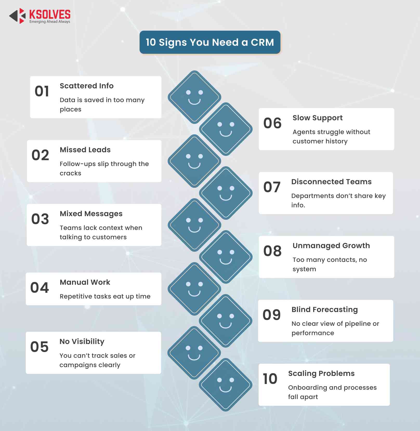 Recognizing the signs that your business needs a CRM solution is the first step toward eliminating inefficiencies and building stronger customer relationships. From missed follow-ups and scattered data to limited visibility and collaboration challenges, these issues silently impact your growth potential. A CRM system brings structure, clarity, and automation to your processes, allowing your teams to focus on what matters most: delivering value to customers and driving revenue.