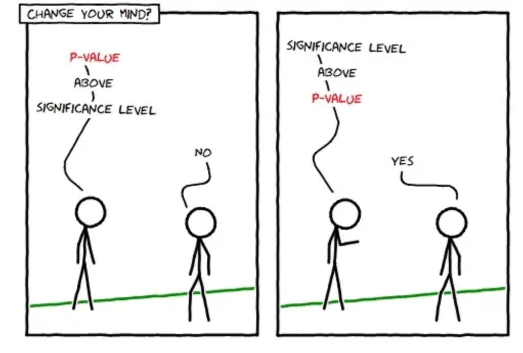 The p-value asks, “How unsurprising is my evidence if I’m living in a world where I should be adopting that default action?”