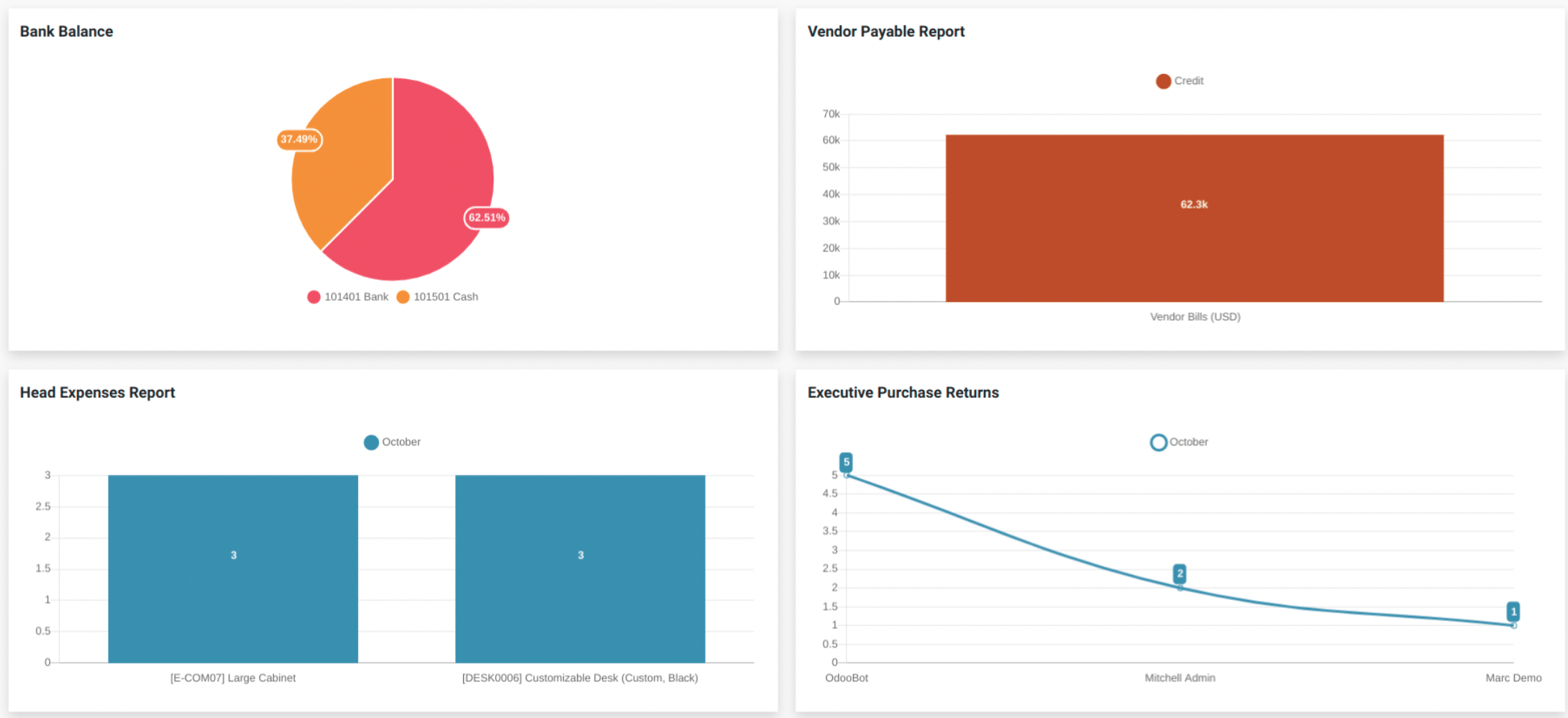 An Odoo user can create reports based on the requirement of his/her business. It becomes easy to create dashboards using this app as it requires no coding. Even a non-coder can easily develop beautiful and informative dashboards.