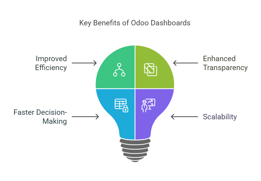 Businesses that want to use data for making strategic decisions must implement Odoo Dashboards as their core component. These dashboards combine data from different departments through visual interfaces that generate rapid market and internal change responses. Through dashboard implementation, companies achieve greater efficiency while obtaining better transparency, faster decision-making capabilities, and flexible solutions that grow with their business needs.