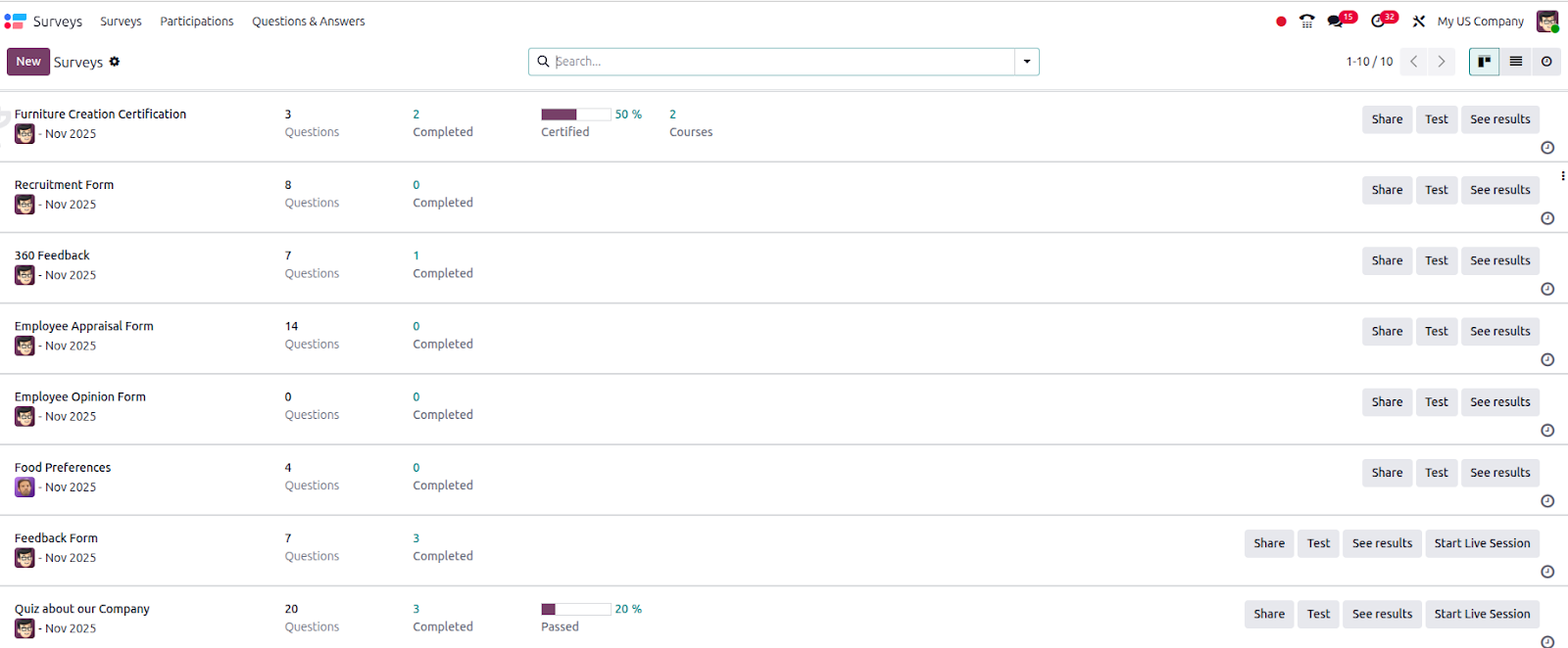 Modules like Surveys, Gamification, and Discuss promote collaboration and feedback. HR teams can launch engagement surveys, recognize achievements with badges, and encourage team communication โ all within Odooโs interface. This builds a connected workforce, boosts motivation, and strengthens internal communication.