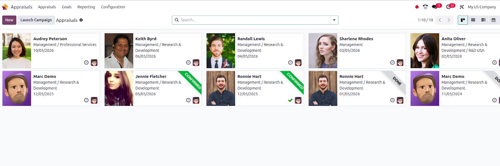 The appraisal module helps managers set goals, conduct periodic evaluations, and track employee performance. It also allows 360ยฐ feedback and self-assessments, creating a transparent and motivating review culture.
