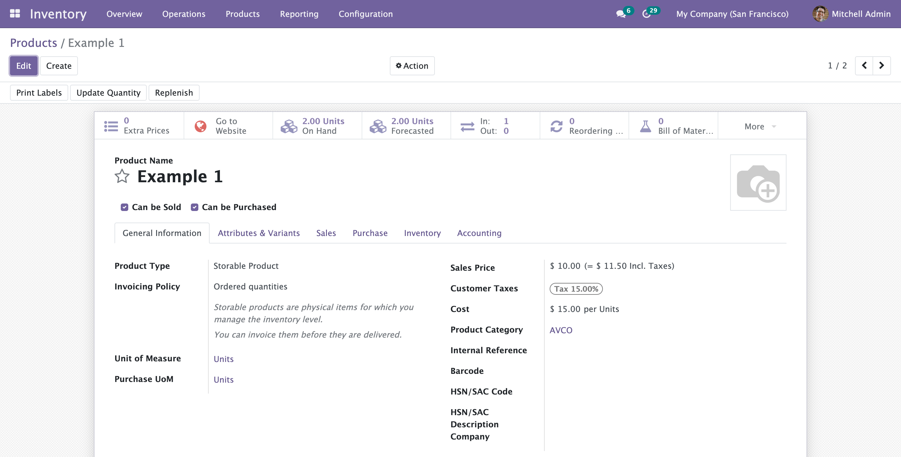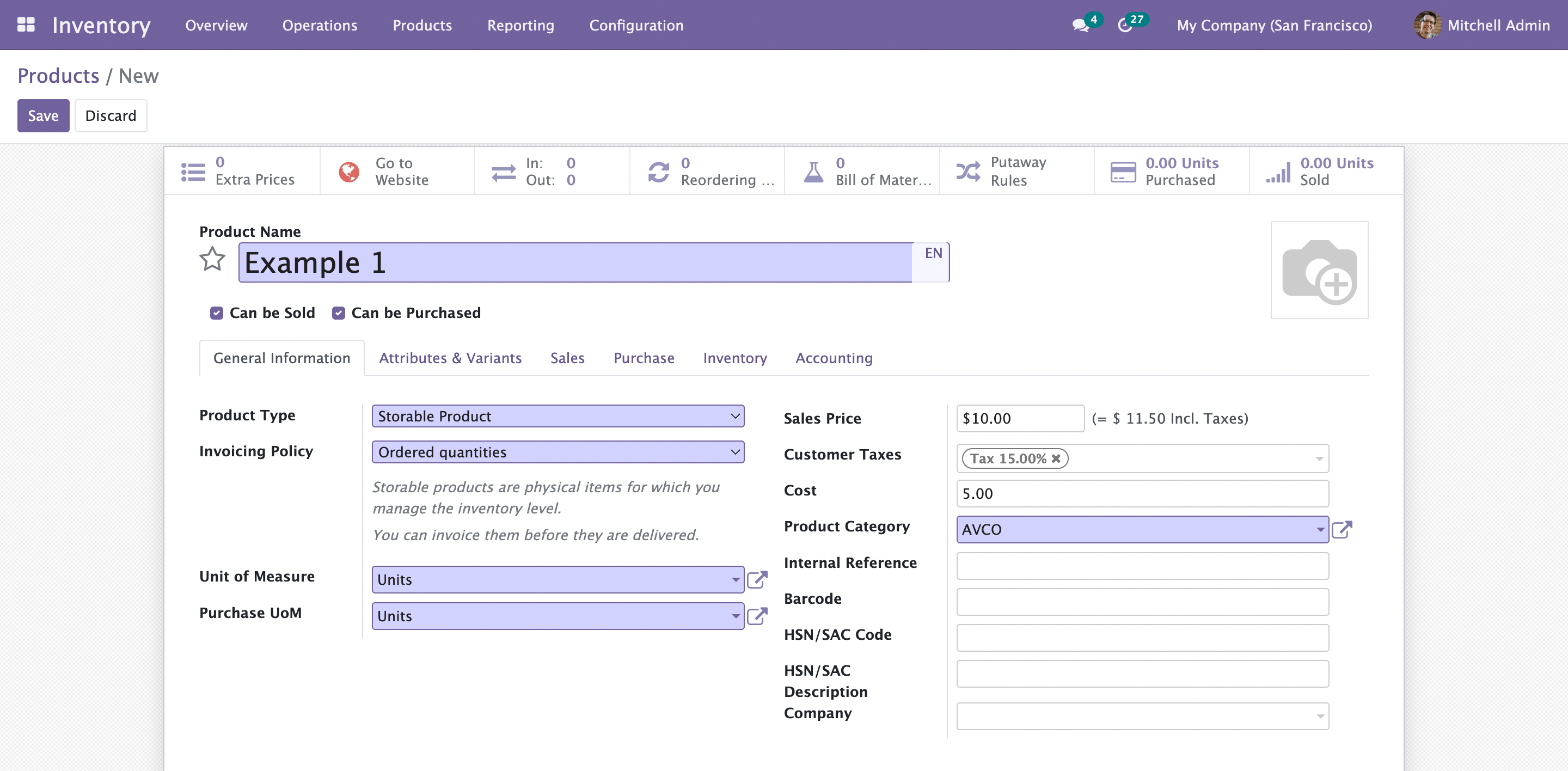 Now go to Products>Products> and click on the ‘Example 1’ product to check its cost price has been updated.