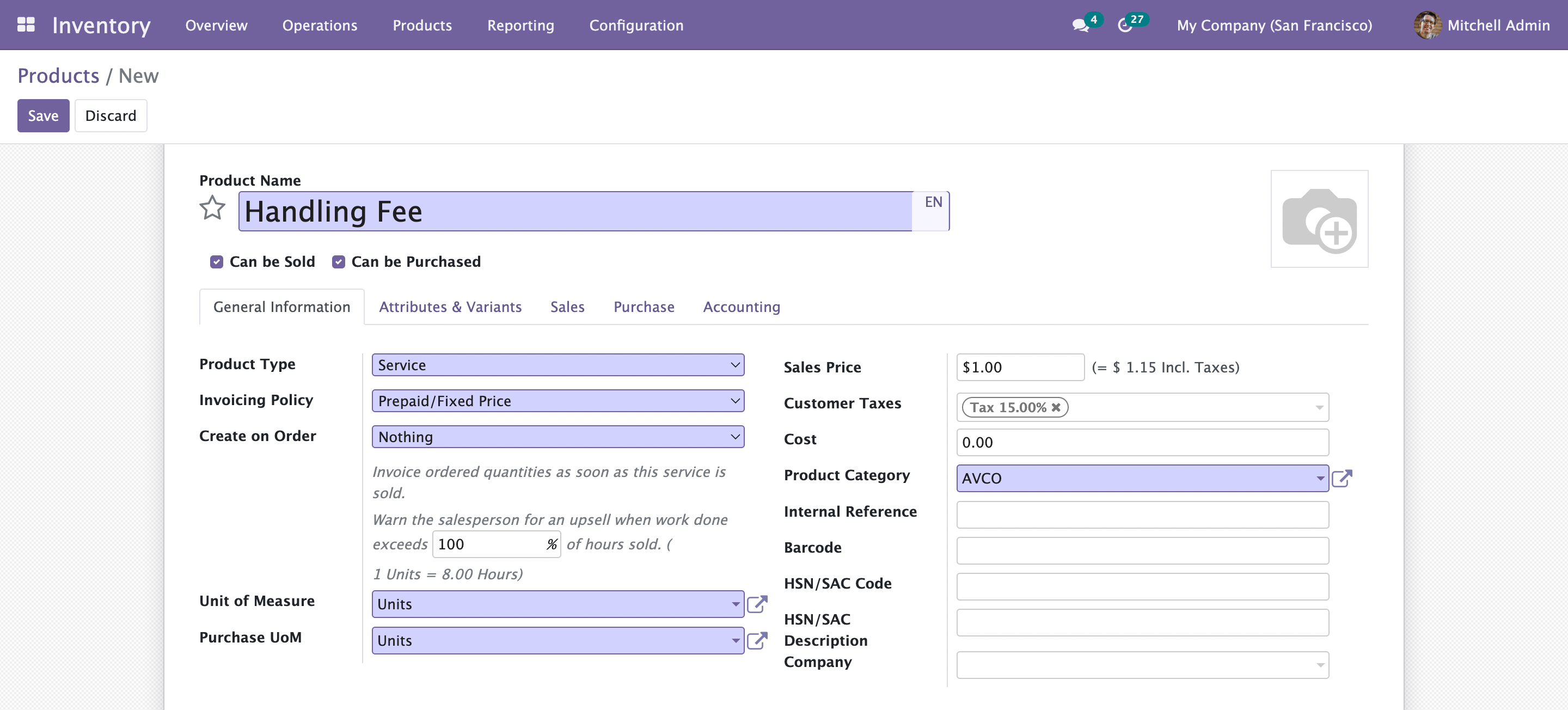 Now, in order to calculate the landed cost of your product, ensure that you have a product of ‘service’ type.