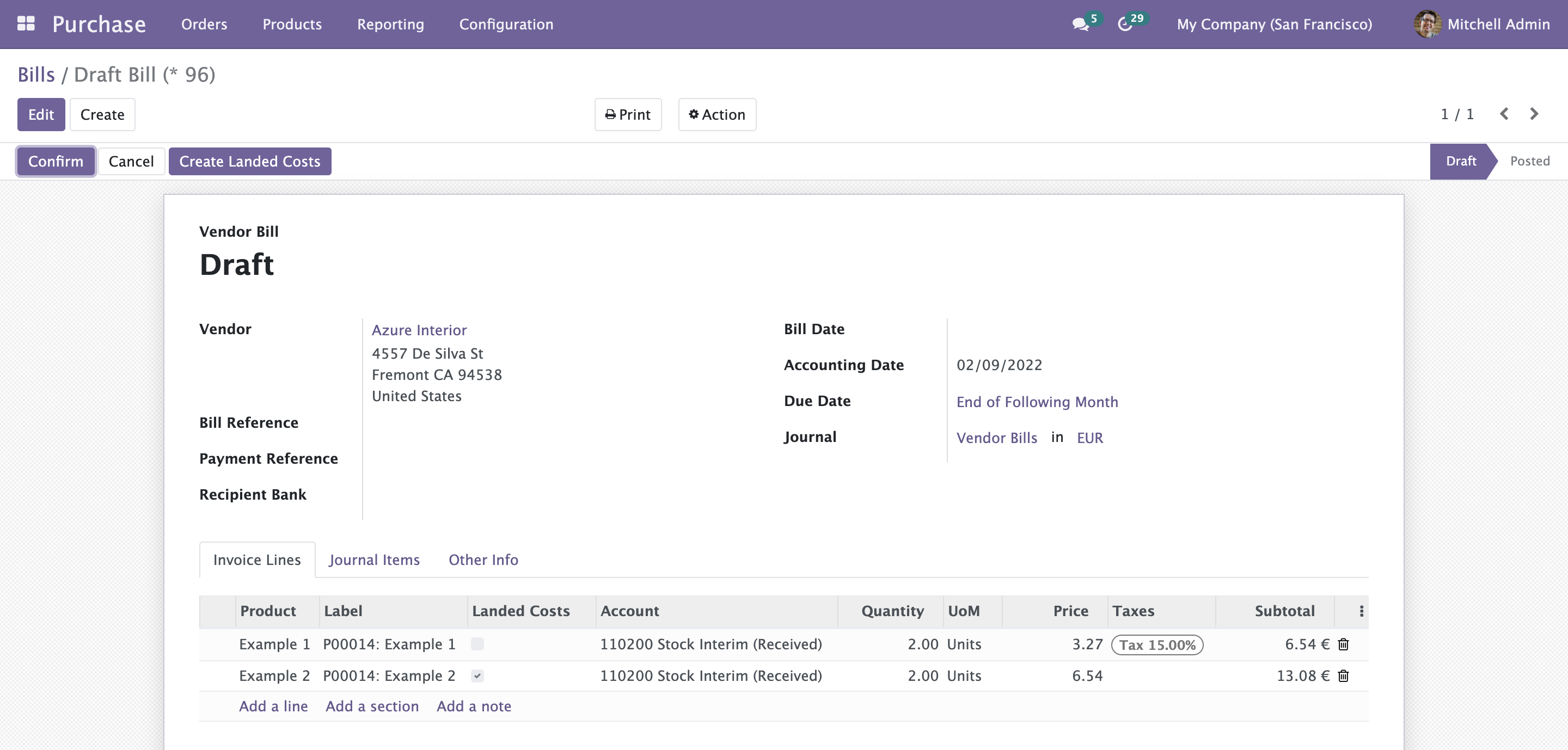 Let’s follow the given process to configure landed cost in Odoo v15.