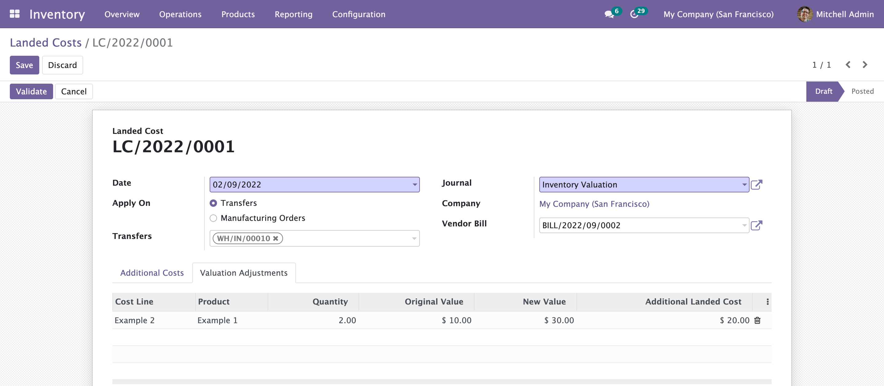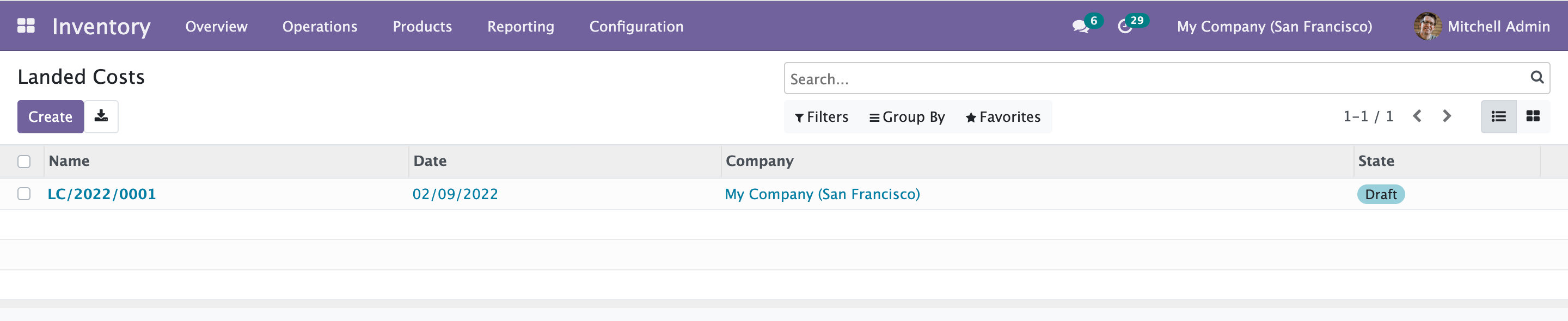Once, you click on the ‘Create Landed Cost’ button, go to the ‘Inventory’ module.