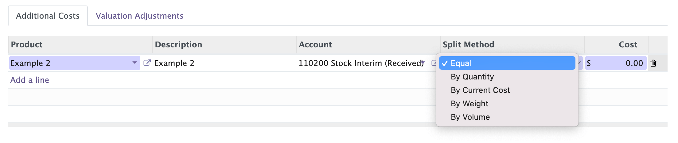 —> Note: Under the respective option, you can also set the split mechanism for landed cost operations. The Default Split Method may be set as follows: