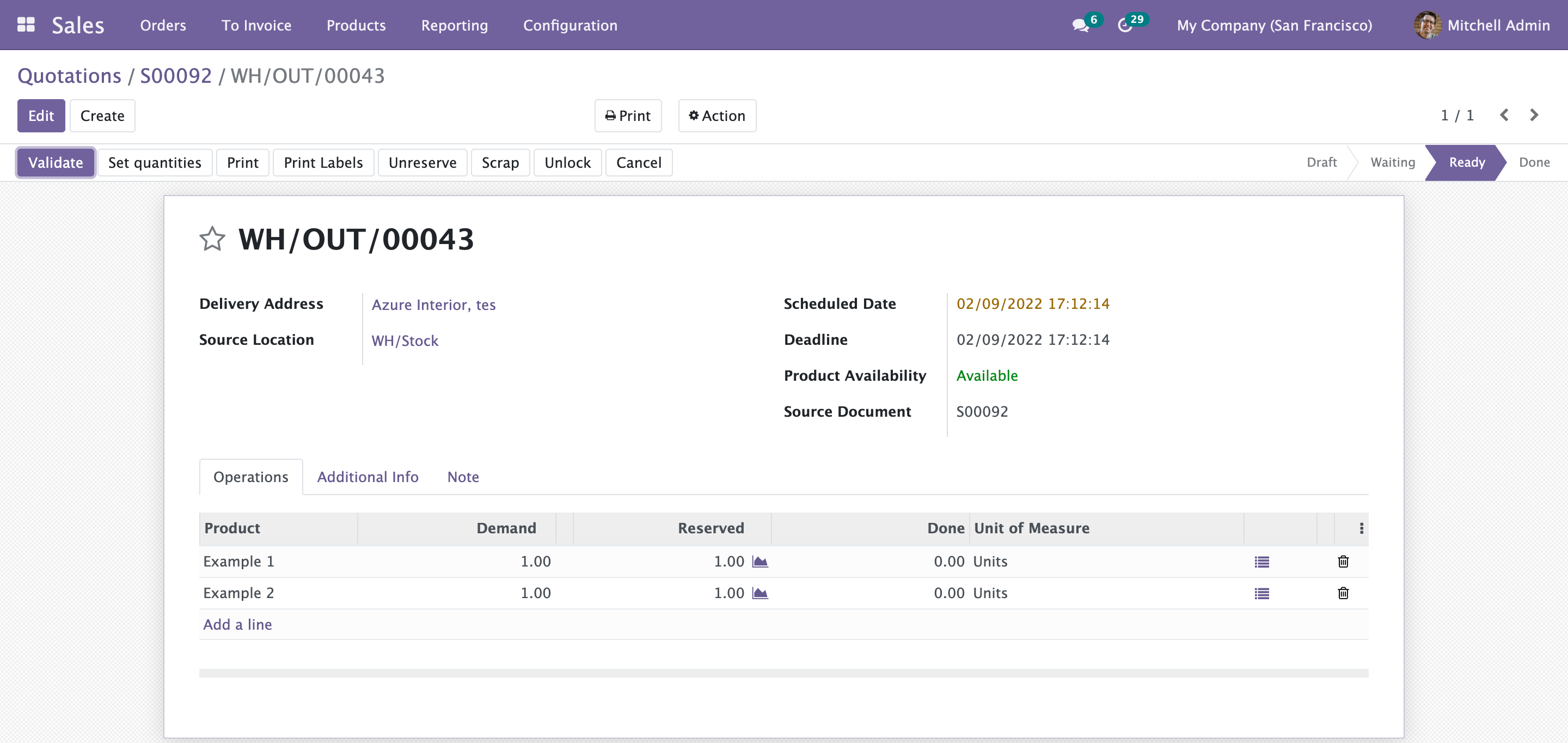 As we can see the quotation has been generated with the ‘WH/OUT’ name. It suggests that the order has been placed for a product. Now click on the ‘validate’ button to complete the process.