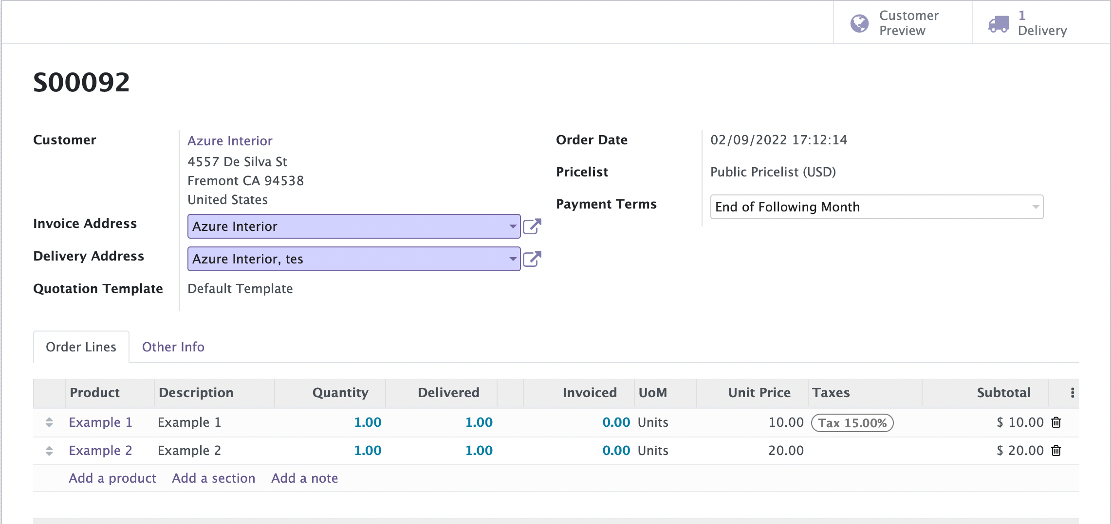 Now in the right corner, click on the ‘Delivery’ button to find the final quotation for the products.