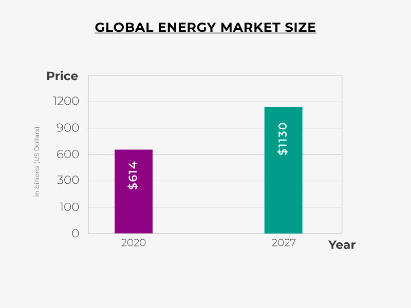 The global energy market was 614 billion in 2020 and is expected to reach 1130 billion by 2027.