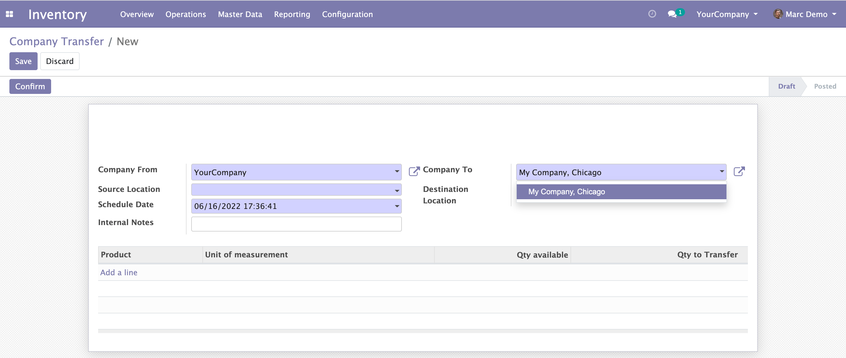 Move product inventories across companies in a single step, but have to follow multiple steps.