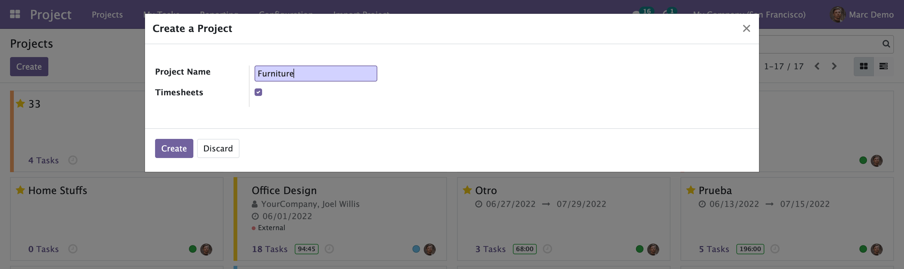 Go to Odoo ERP>select the Project module, you will get a window like this: