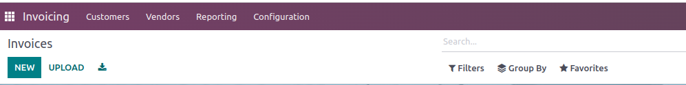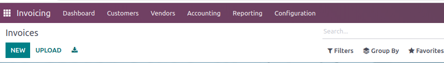 Whenever you open the Invoicing module, you get only 4 menus. To enable some more menus, you need to perform some steps. Before that, you can refer to the below image and find that the invoicing menu has only four menus: customer, vendors, reporting, and configuration.