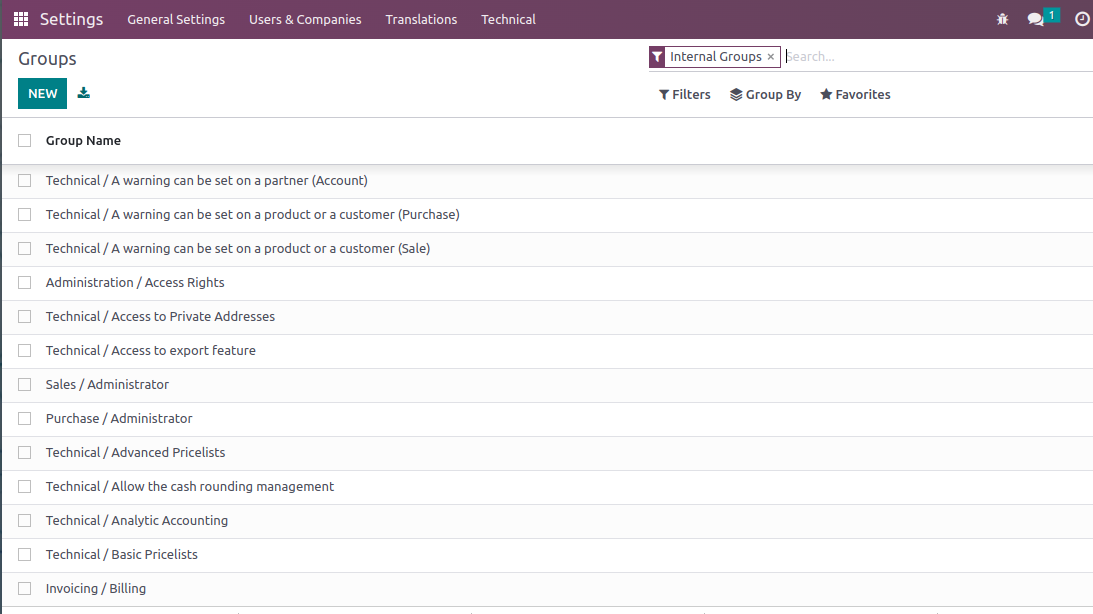 Group Screen in Odoo Setting