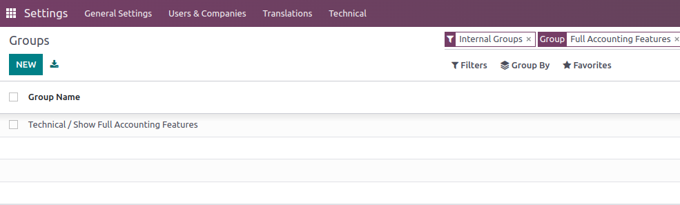 Activating Full Accounting internal user in odoo