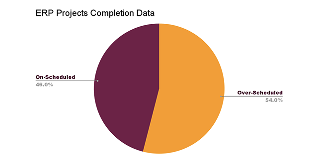 According to a global survey, 54% of ERP installation projects are completed over the defined time, while 46% of clients said that their implementation was completed on schedule.