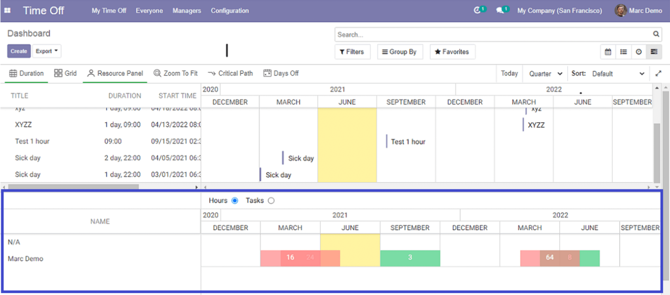 Gantt View Time Off