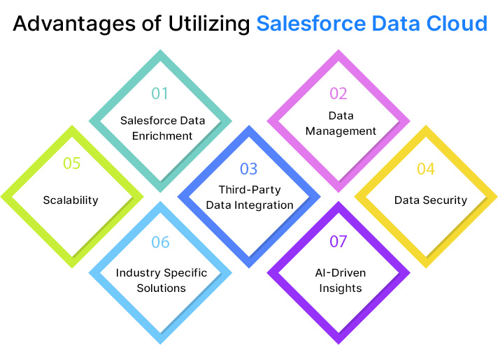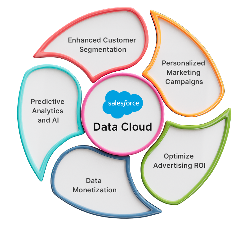 Salesforce Data Cloud offers various benefits, like generating insightful decisions and unlocking actionable insights. Also, it is known to optimize client interactions, simplify processes, and effortlessly boost marketing and sales initiatives. Some of the benefits of Salesforce Data Cloud are mentioned below: