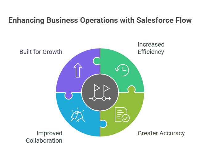 In this Salesforce Flow Guide, we highlight how leveraging Flow can transform your business operations. By automating workflows and reducing manual effort, Flow delivers measurable improvements across key areas.