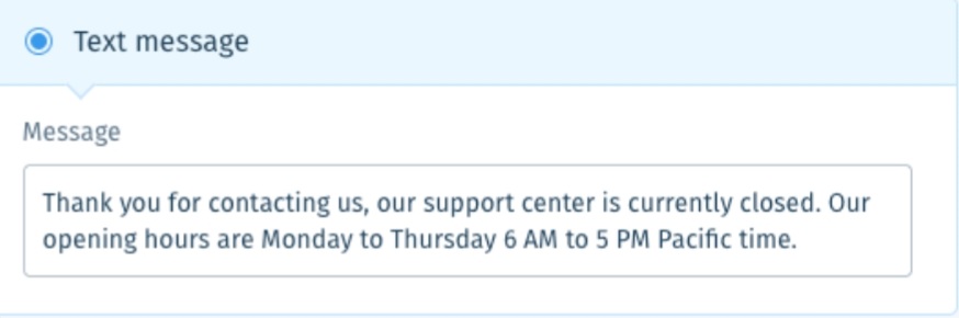 To enhance the support experience for your customers, it is important to clearly communicate your office hours with them. It is recommended that you discuss with your texting provider about their features to handle customer inquiries when you and your team are not available.