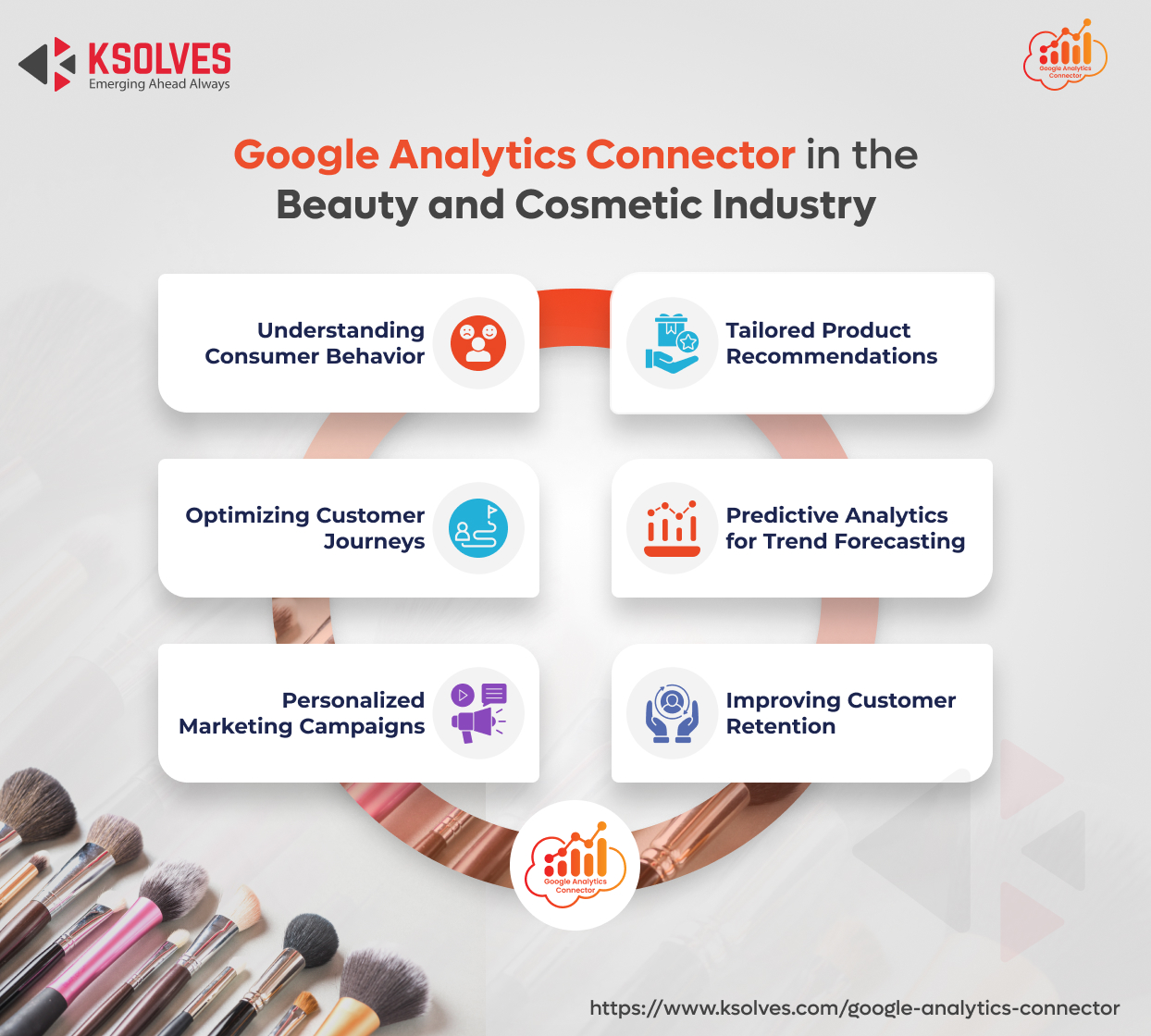 Utilizing Ksolves Google Analytics Connector is one of the strategic moves for the beauty and cosmetics firm. GAC will help industry optimize customer journeys, provide customized suggestions, and improve marketing tactics.