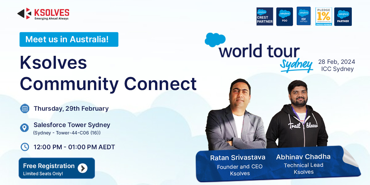 Hey Peeps! It’s the time once again!! We will meet in Sydney and are also excited to share the platter of knowledge and solutions. This year Salesforce Sydney Tour 2024 will be special and we have exclusive benefits at Ksolves Salesforce Community Connect.