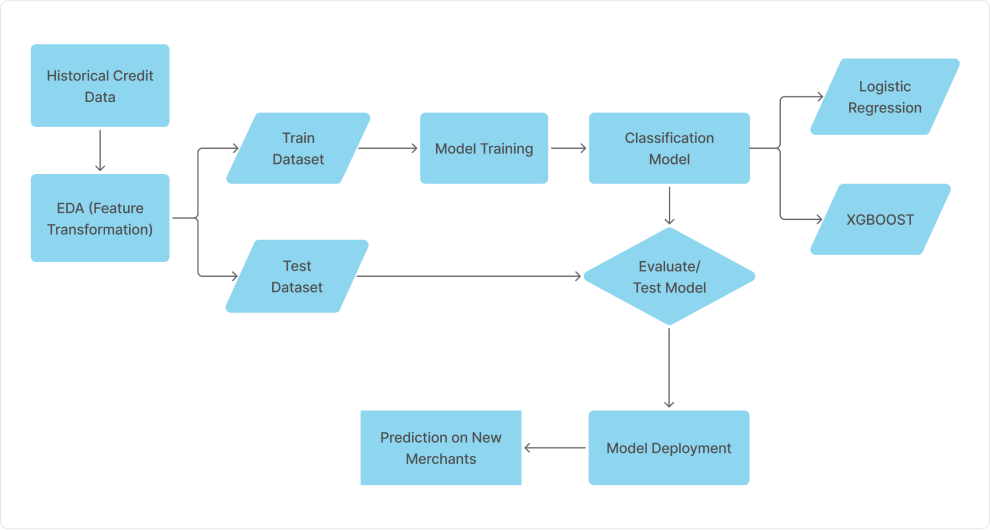 • To address this challenge, the client requires an automated AI / ML model capable of real-time prediction to distinguish between creditworthy and high-risk merchants.