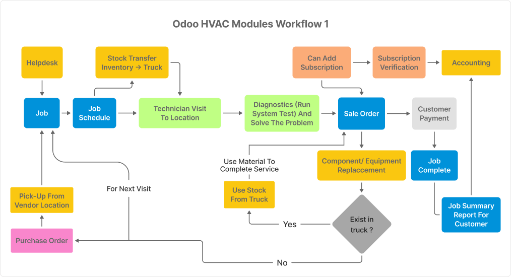 Our client has an HVAC Service and Maintenance company. They were in search of an ERP system to simplify their daily tasks. The client was a service-type company whose basic day-to-day operations are involved in ERP which manages all the appointments of technicians and tracks their working time on each site visit. They wanted to manage and save the record of all the installed systems in a particular location with the make, and model of equipment used.