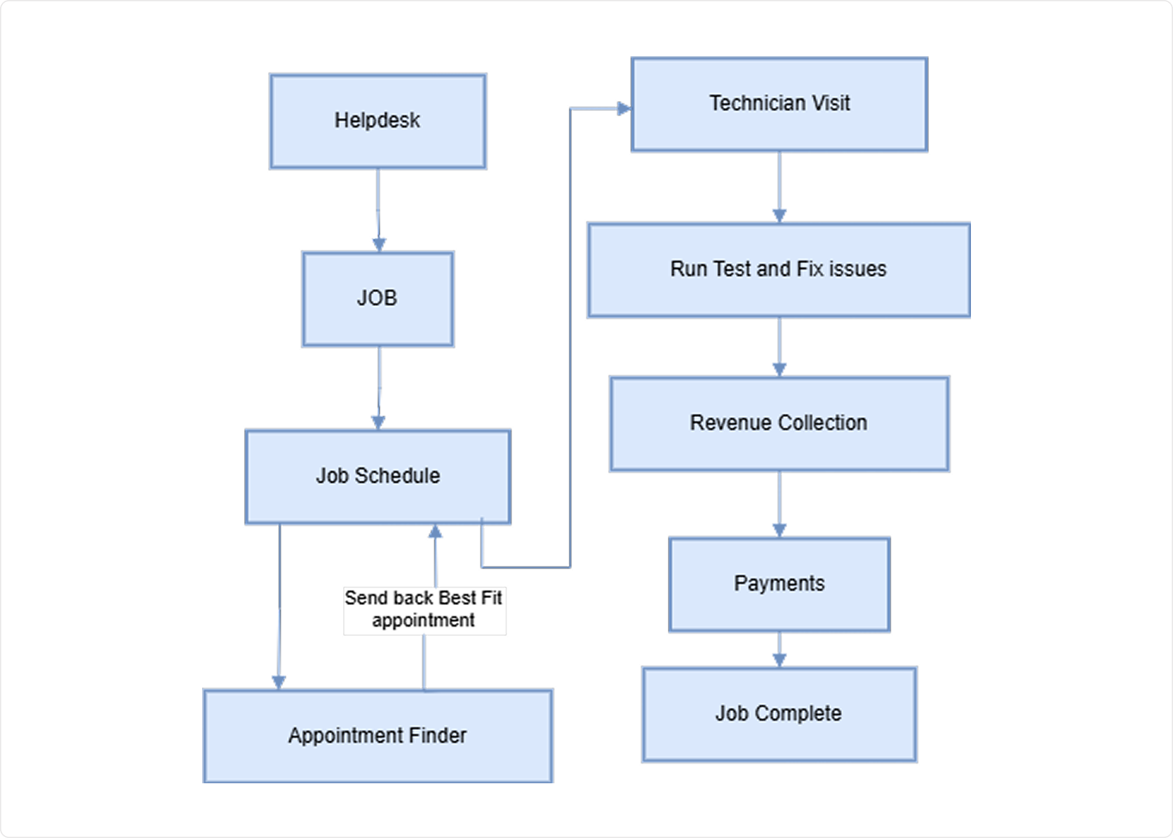- Daily Appointment Scheduler: Developed auto-populated dashboards displaying each technician’s daily schedule, dynamically synced with service requests and technician availability.