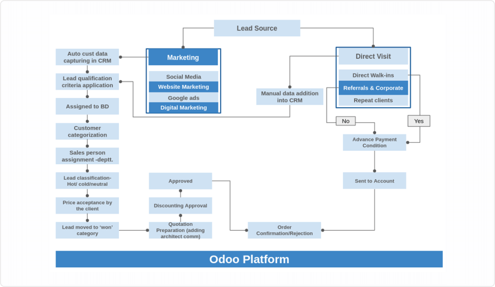 Our client operates in the custom furniture and interior design business and is also engaged in trading and subcontracted manufacturing of a diverse range of products. Fulfilling a single order was complex and challenging due to unique customization for each customer. Additionally, the client was utilizing multiple applications to manage and process orders, requiring them to constantly switch between them. They were looking for a centralized platform to manage all processes, reduce errors, and boost productivity.