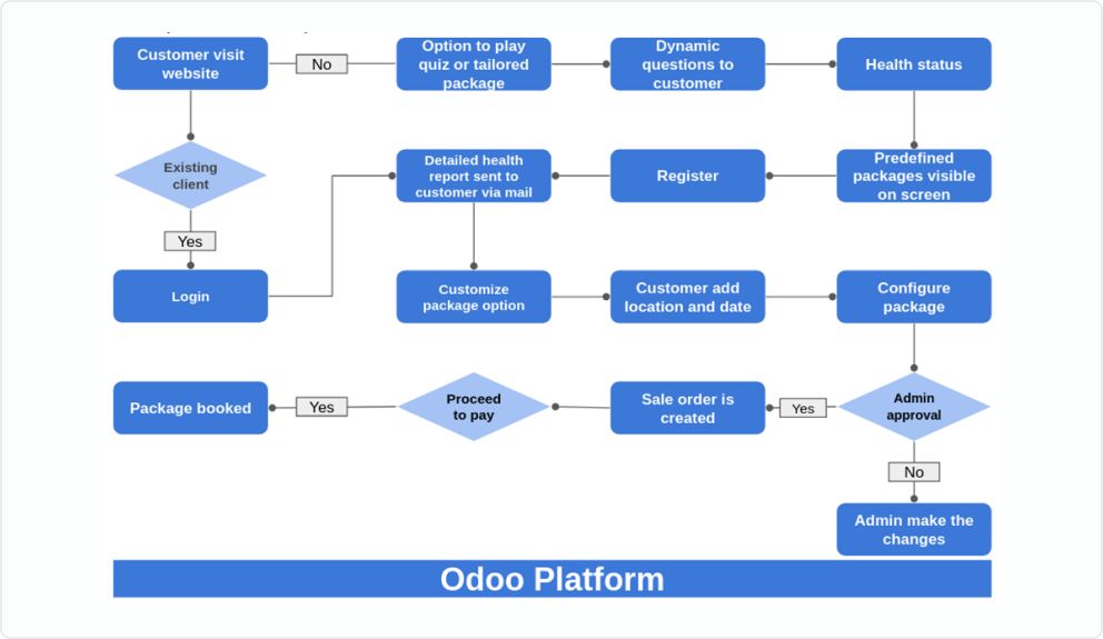 With a feature-rich website and Odoo as a comprehensive solution, our client was able to streamline customer service operations. The synchronization of the mobile application with the Odoo database enabled the client to centralize and easily access patient data, leading to significant improvement in providing personalized medical packages based on health scores and preferences. Moreover, the dynamic chatbot assisted the client in patient health assessment with a dynamic quiz. Overall, the client observed an increase in revenue, an improvement in service efficiency, and a rise in repeat visits & referrals with our solution.