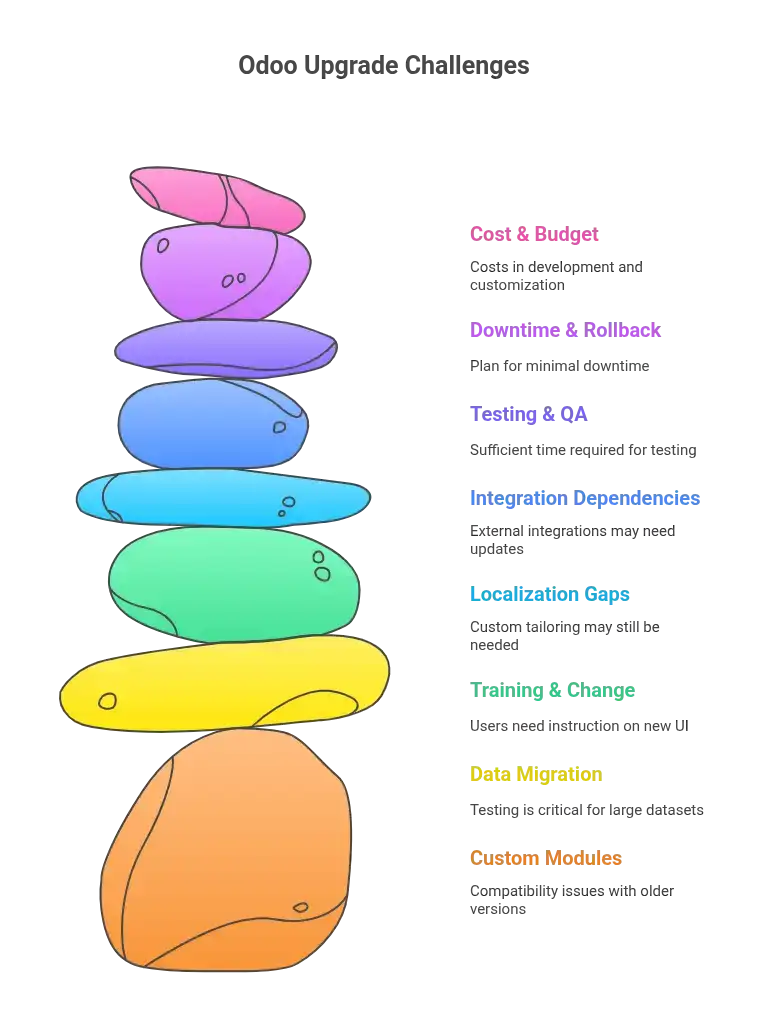 No major upgrade is without its costs or risks. To get maximum benefit from the Odoo 19 upgrade, you should consider: